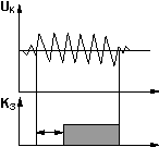 (UK – контролируемое напряжение, Т – задержка включения, KЗ – состояние замыкающего контакта)